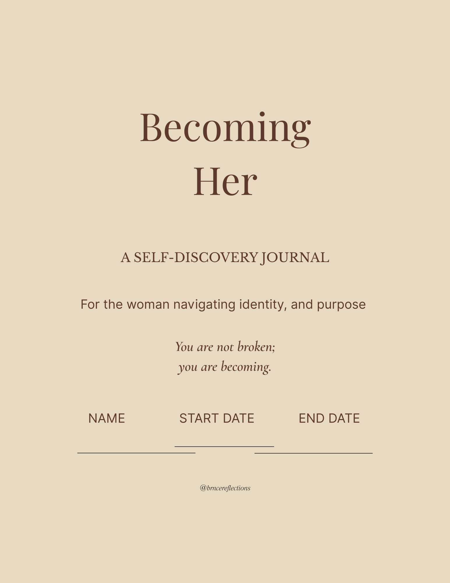 Unlock the woman you’re becoming with this beautifully designed self-reflection template. “Becoming Her” is a free digital guide crafted to help you pause, reflect, and realign with your true self. Whether you’re navigating adulthood, career shifts, or simply craving clarity, this downloadable PDF is your space to breathe and journal your growth.